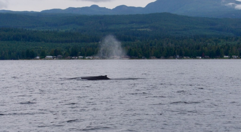 A few days ago we anchored in Sturt Bay near the top end of Texada Island. It is one of the few anchorages along Texada’s long coastline. We dropped the hook and dinghied over to the Texada Boating club docks so we could enjoy a walk through the village of Vananda Cove. At the head of the dock was a sign explaining what to do if one encountered whales–grey whales specifically. I skimmed the sign not expecting there to be any chance of seeing them. We saw them the next morning less than five nautical miles from the bay!