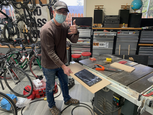 I have known David for years. David is a very good carpenter. He’s a master craftsman. Thankfully, he’s also very patient and generous. One afternoon after answering several of my texts he called and told me to take everything to his place on the following Saturday and we’d make my 3/8″ European/American White Oak plywood together. I took him up on his offer.