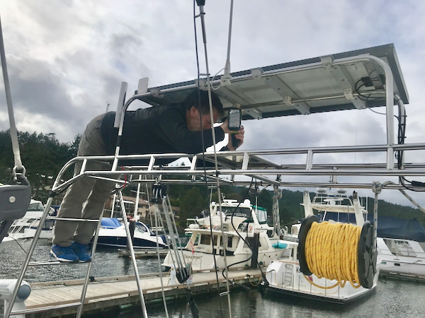 As luck wouldn’t have it, the radar unit itself was a different shape and wouldn’t fit in the place of the old transceiver. In the end we had to drill new holes. The radar arch is made out of stainless steel. Stainless steel is used on boats because it is very strong, very hard and doesn’t rust. These same properties make it very hard to drill into. Drilling the holes took many hours and several trips to the local building centre to buy more drill bits because mine kept breaking. Not to worry. It got done. (The cuts on my hands healed up in a week or so.)