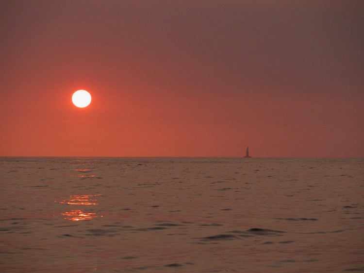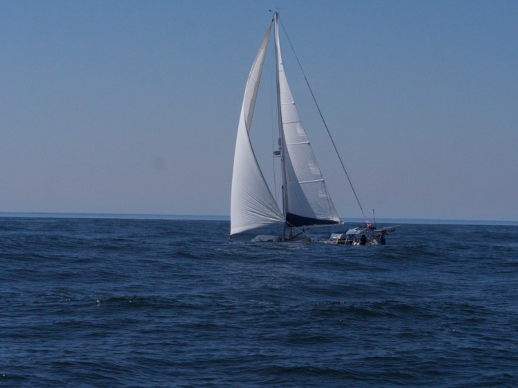 When we turned around after 24 hours, we were 114 nautical miles offshore–211 km. People have asked if it was scary to be so far from land. I have to say that I didn’t really think about it before being asked. It wasn’t. We felt very safe and secure aboard Cambria. Once one gets away from the coast there isn’t anything to run into. After 12 hours of sailing west we no longer saw any fishing boats or freighters. It was just us and our two buddy boats. It’s different than coastal cruising where one has to constantly adjust course to avoid boats or other obstacles. On this trip it felt really good once we were clear of the Ucluelet harbour to set our course, trim the sails and sit back and let Cambria do the rest.