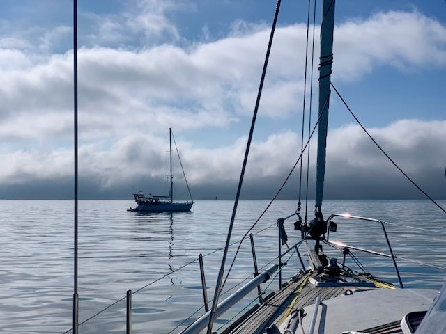 On this leg, we were visited by dolphins, cruised past sea lions, and saw several whales. The anchorage at Drakes Bay was fascinating. There was only one other boat anchored when we arrived. There were a few buildings on shore but we saw very little activity (other than an unusual number of flies.) It felt very remote though it was only 25 nm from the Golden Gate, Sausalito, and San Francisco.