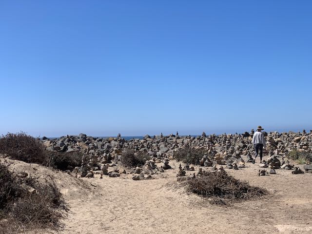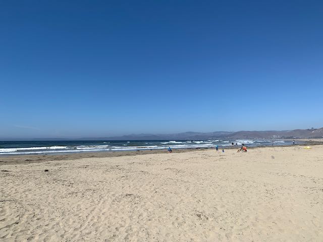 The rock at Morro Bay is the inner core of a very old volcano. We walked out to have a closer look and then walked along the beach. It’s a long beautiful, though windy, beach. Apparently, it is a well-known surf spot. We didn’t see any surfers when we were there. Not being a surfer, I’m not sure how they’d surf the chaotic waves that were crashing onto the beach.