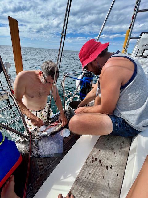 The electric winch that we use to raise the mainsail isn’t working. It will take some time to trouble shoot and repair it. Also, we need to have a piece of metal fabricated for our mainsheet traveller. The piece broke on the way down the outside of the Baja. We can sail the way it is, but we’ll sail better once it’s repaired.