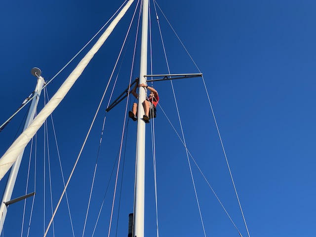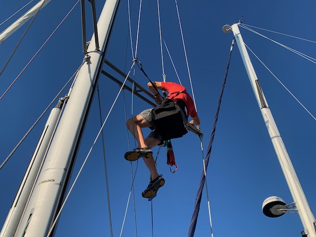 Last week, I went up the mast in preparation for our passage to the Marquesas. I looked for any signs of wear or weakness that might be a problem on our passage. I didn’t find any.
