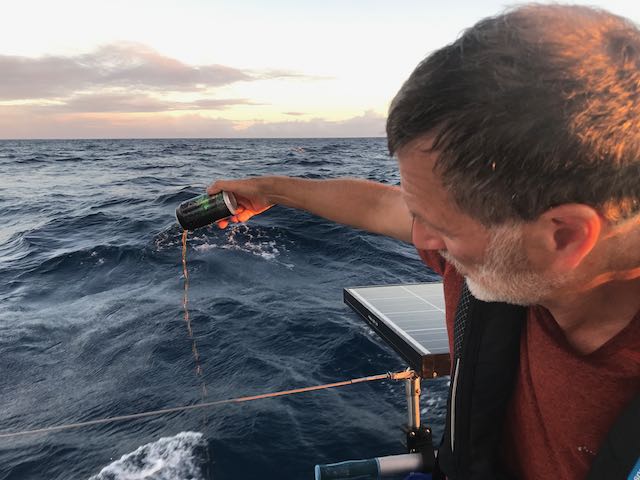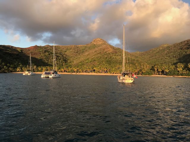 I’m on my last night watch before we reach the Marquesas in French Polynesia. It’s magical. A full moon in a clear night sky, 12-14 knots of wind with calm seas, warm air blowing, and I’m not seasick. Here’s to our Pacific Ocean crossing. Cheers!