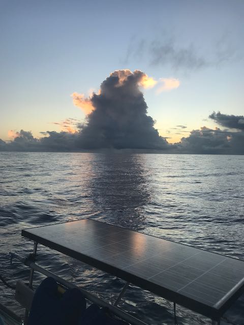 The Doldrums, as they are so commonly known, is an area close to the equator where different weather patterns converge. As a sailor, it can have very little wind for long stretches of time (days). It can also have intense wind for short stretches of time (5-15 minutes). Its official name is the Intertropical Convergence Zone (ITCZ). The challenge is to find and cross at the narrowest (no wind) spot with the least amount of time spent drifting. As an added challenge, a purist sailor would try to sail through without using the engine. I think we are doing ok with the narrowest spot challenge. But the purist sailor challenge? And drifting away for days? Let’s just say our engine is on.