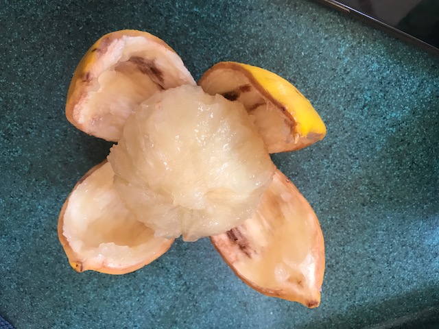 Abiu has a creamy/jelly like consistency with white/translucent fruit. According to google, it should taste like a sweet caramel custard. Hmmm…