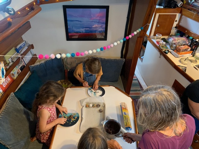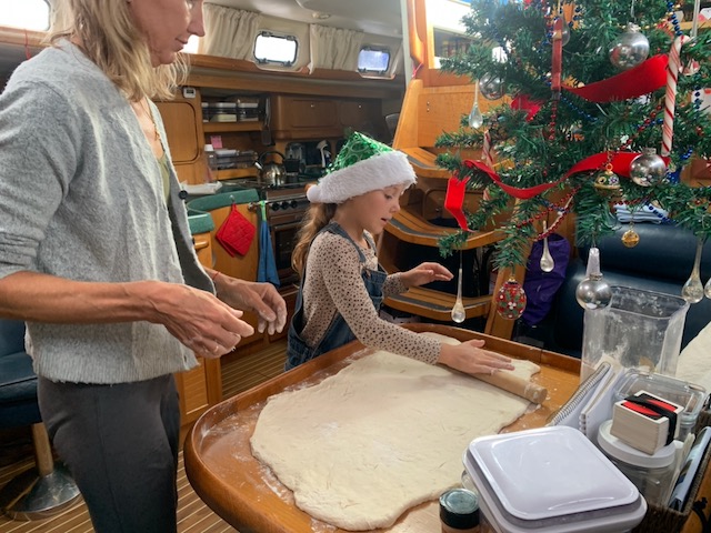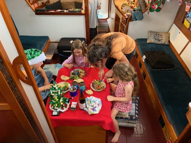We broke with tradition this year and had our Christmas dinner on Christmas Eve aboard SV Unbelievable. The meal and company made for a great Christmas. We celebrated Christmas Day with a beach potluck with other cruisers. Celebrating Christmas Day on the beach may have been a first for us.