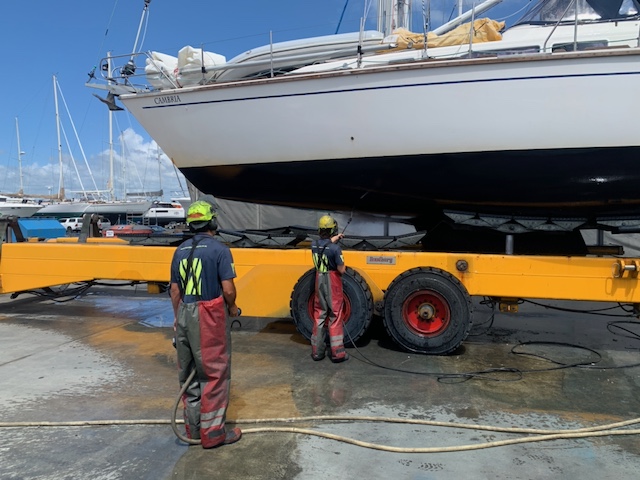 We decided to haul out and anti-foul our hull. We don’t stay in marinas very often and likely will only use them once or twice between now and when we leave so that’s not the main reason we hauled out. The main reason is because our bottom paint wasn’t holding up well. The growth has been unreal here. We’re hoping some fresh bottom paint will help keep the growth at bay. Time will tell, I guess.