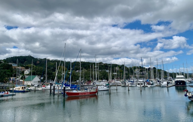 We are currently in the small city of Whangarei. It’s a two-hour drive north of Auckland. It’s several hours upriver from the ocean but once here, everything is very convenient–most shops are within walking distance. The marina is a block or two from the downtown core. A large grocery store is right across the street from the marina. One is able to push one’s cart full of groceries right up to the boat to unload. It doesn’t get any easier than that!
