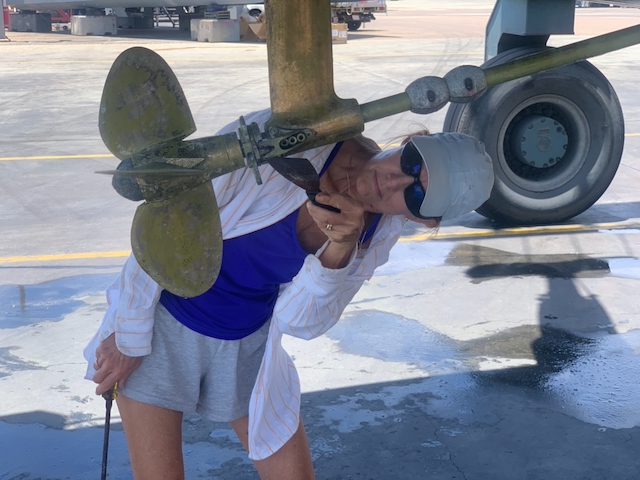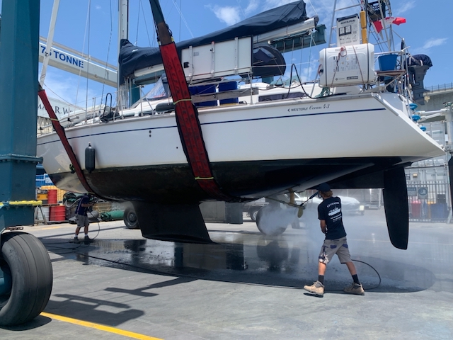 Preparations are going well though the weather has been a bit of a challenge. Initially, I was concerned about rain. I worried that if it rained while we were stowing sails and gear, it would all grow mould on the three-week trip to Mexico. We’ve been lucky. Except for one thunderstorm which came at night, we haven’t had rain. So why is the weather challenging? It’s because we have had two days with temperatures over 35° C (95°F.) Thankfully, today will be cooler–only 30°C.