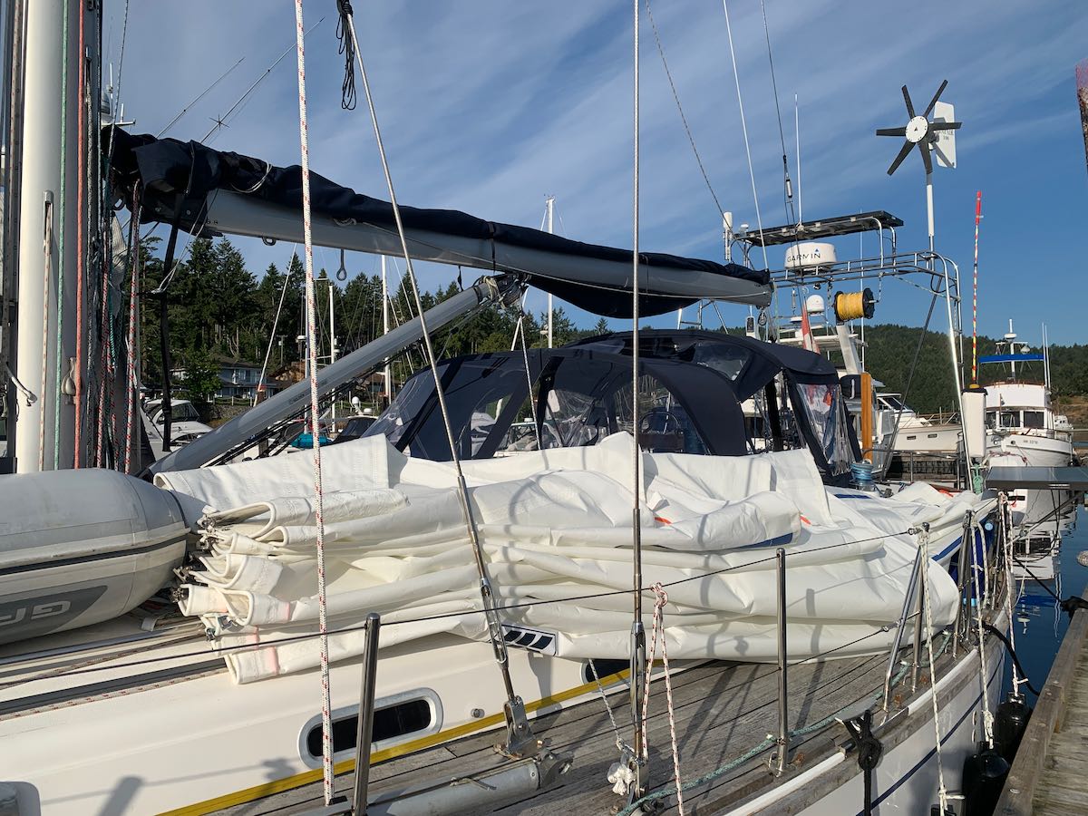 We got our sails back on. We took them off after our trip around Vancouver Island and had UK Sails look over them to check for wear and places that needed reinforcement. Our sails are big, heavy, and awkward to work with so getting them on and off was a bit of a job forContinue reading “Sails”